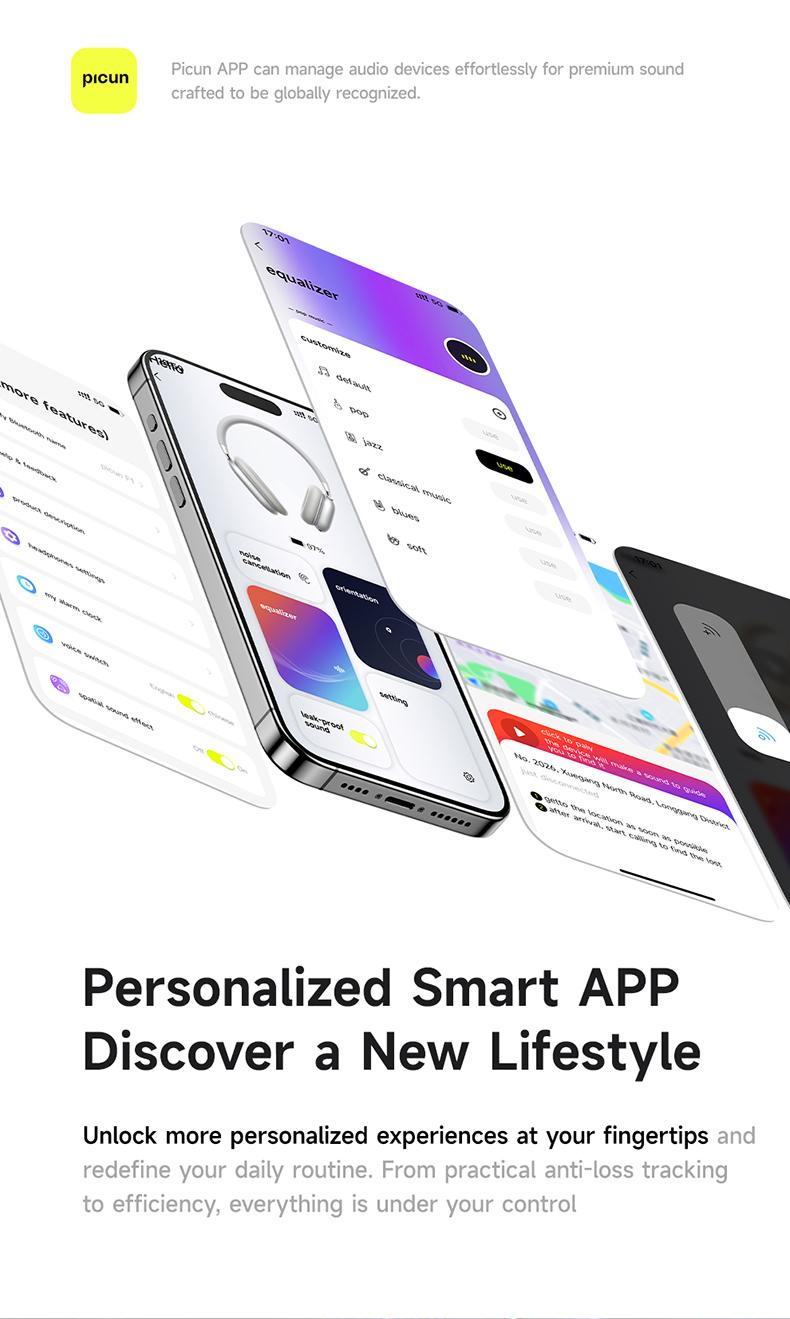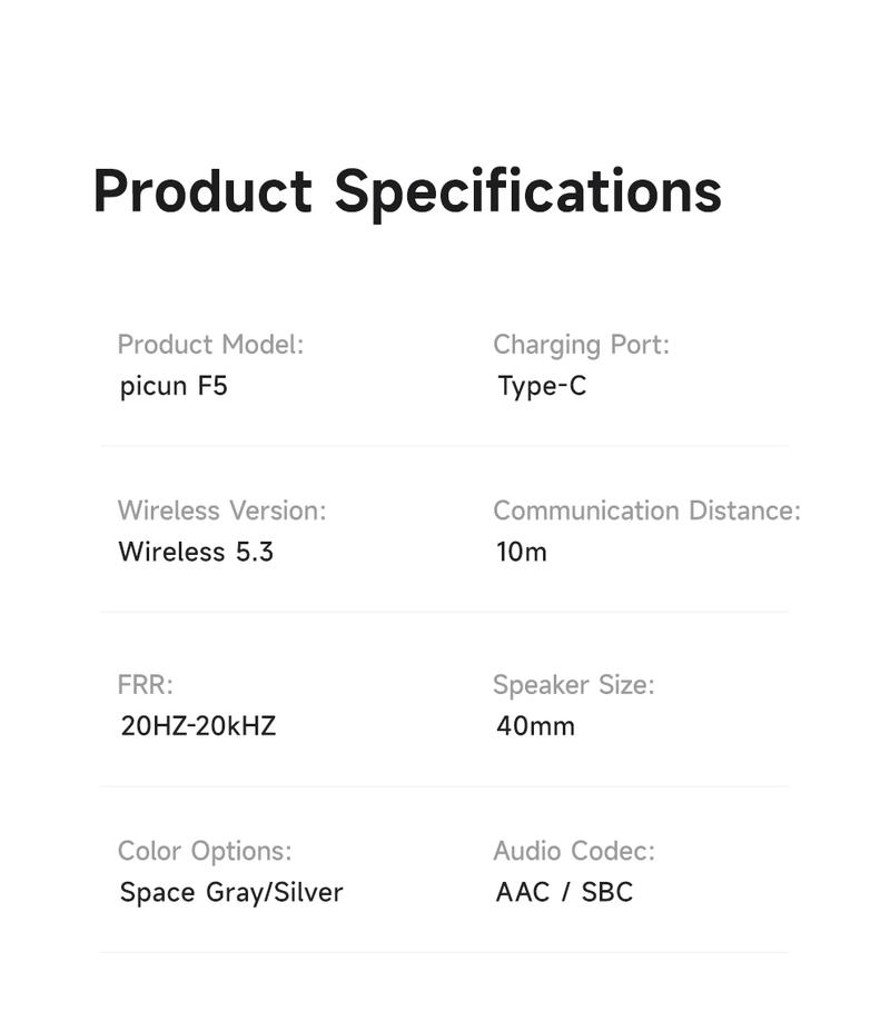 Picun F5 ANC Wireless Headphones, Bluetooth 5.4 Low-Latency, -35dB Noise Cancellation, Electronic Connection, Hi-Fi Audio, Custom EQ, Comfortable for Travel & Work Connection Electronic Headset